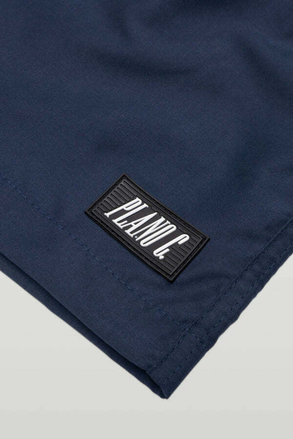 Cós rebatido com elástico interno, ilhós personalizado e cadarço com ponteiras metálicas. Possui bolsos faca nas laterais com acabamento em pesponto e bolso traseiro com vista seta, ilhós de respiro e etiqueta embutida. A etiqueta emborrachada com logo “PLANO C” é aplicada na parte frontal esquerda da barra.